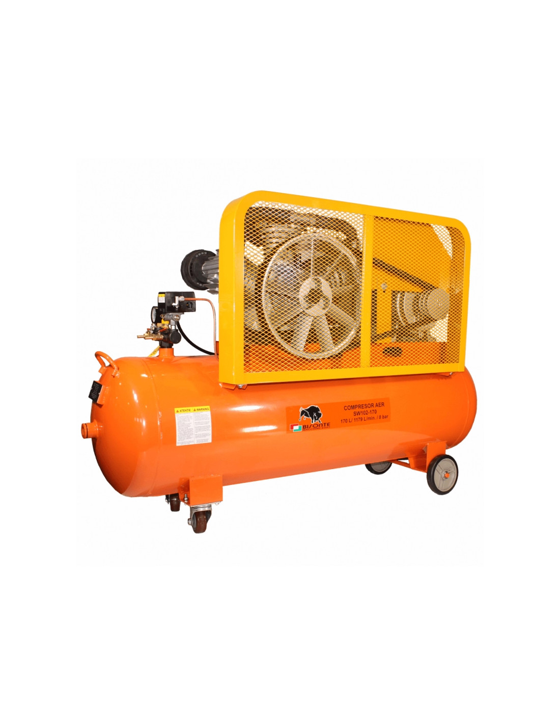 Compresor de aer cu piston BISONTE SW102-170 cu ulei 400V 10 cp debit 1179 l/min presiune 8 bar