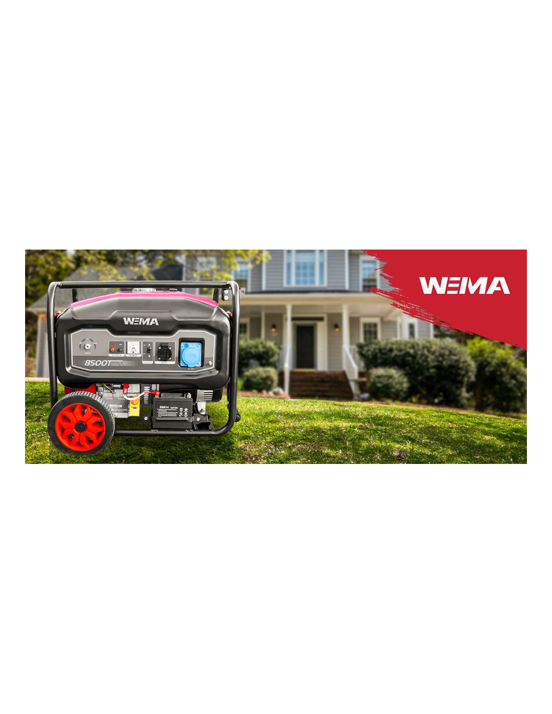 Generator curent Weima WM 8500 ET motor 18 CP 4 timpi putere maxima 8kVA 230V benzina rezervor 28 l pornire electrica roti si maner transport